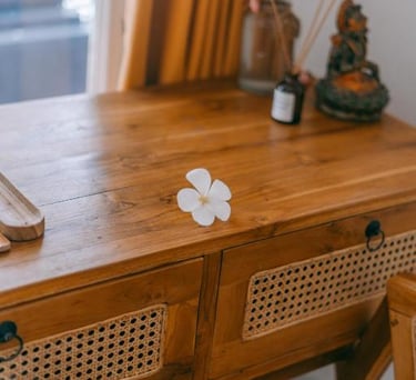 We created our space around the elements we love most about Bali - Surya (sun), Purnama (full moon), Samudra (ocean), Udara (air), Mimpi (dreams), and Cinta (love). Each space reflects the beauty, energy, and gentle magic that makes our island unforgettable. Together, these six elements inspired Sukacita, which means “Pure joy” in Bahasa Indonesia.